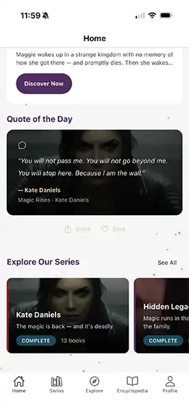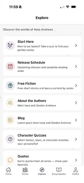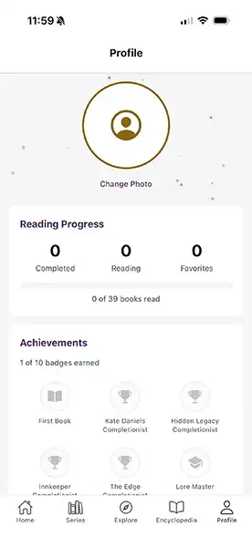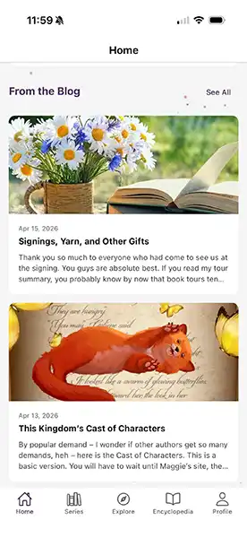 We have an app in the works. It will allow you to keep track of the our books, it will offer feed from the blog, and have achievements, discounts, and some exclusive content. Nothing too ground-breaking, so please don’t go into full FOMO (fear of missing out.) It is being beta tested now. I have some screenshots for you.