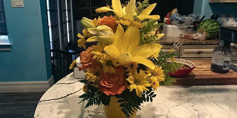 Avon sent us beautiful flowers. The card reads: Congratulations on BLAZING the bestseller lists!!! Erika, Pam, Angela, and the rest of your friends at Avon…